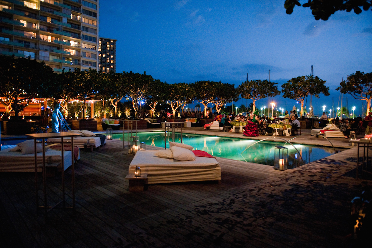 アラモアナショッピングセンターへは徒歩2分、ビーチやカラカウア大通りへは徒歩圏内。先ほど述べたように近隣のレストランにもアクセスしやすい立地ですが、存分にホテルの施設を楽しむのであれば、サンライズ・プール横に併設されたレストラン「ザ・グローブレストラン&バー(The Grove Restaurant & Bar)」もチェックしてみては。サンセットプールとアラワイボートハーバーを眺めながら食事を楽しめ、夕方からディナーにかけての雰囲気は抜群!