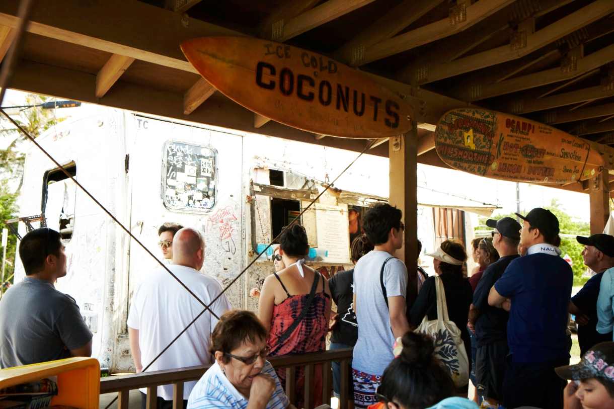 落書きでいっぱいのトラックがアイコンとなっているジョバンニーズは、かなり長い歴史があります。公式サイトの経歴紹介ページを参照すると、このトラックは1953年頃の改造車で、1993年頃から営業を開始。最初は特定の場所を定めず、ノースショア周辺の道路沿いでガーリックシュリンプを販売していたのだとか。