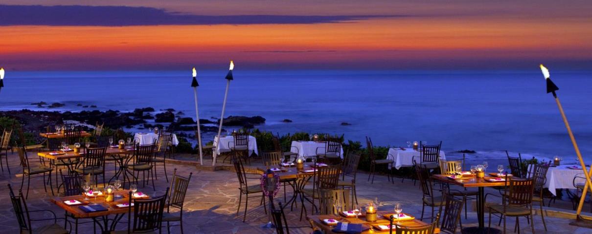 こちらでは、美しいハワイ島のサンセットを眺めながらカクテルを楽しんだり、オーシャンフロント・ダイニングで開放的かつロマンティックなディナーを過ごせます。