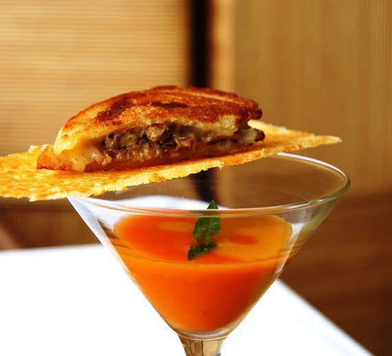 <トマトスープ&サンドイッチ。グリルドチーズを使った斬新な盛り付け!>