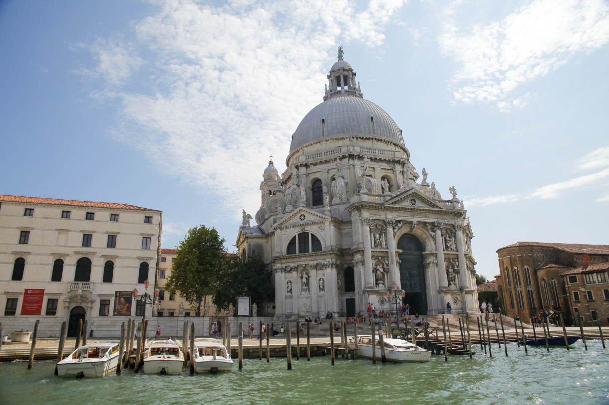 「サンタ・マリア・デッラ・サルーテ聖堂」は、巨大な八角形の本堂とクーポラ、6つの礼拝堂、そして白く輝く外見が大きな特徴です。一説には、「イタリアで最も写真が撮られている場所」と評されるほどの名スポットとされています。