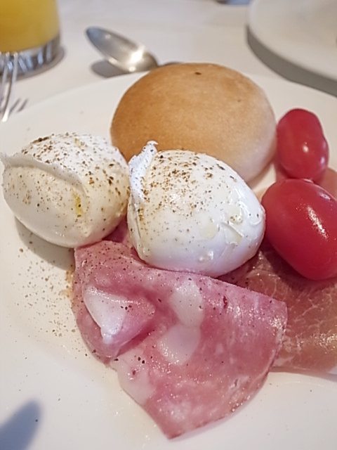 また、新鮮なモッツァレラチーズは、日本では味えないような味。ヨーグルトのような感覚で頂くことができ、ナイフで割ってみるとそのクリーミー具合がよく分かると思います。その他のハムやフルーツも全てシンプルながら、感動の美味しさです。