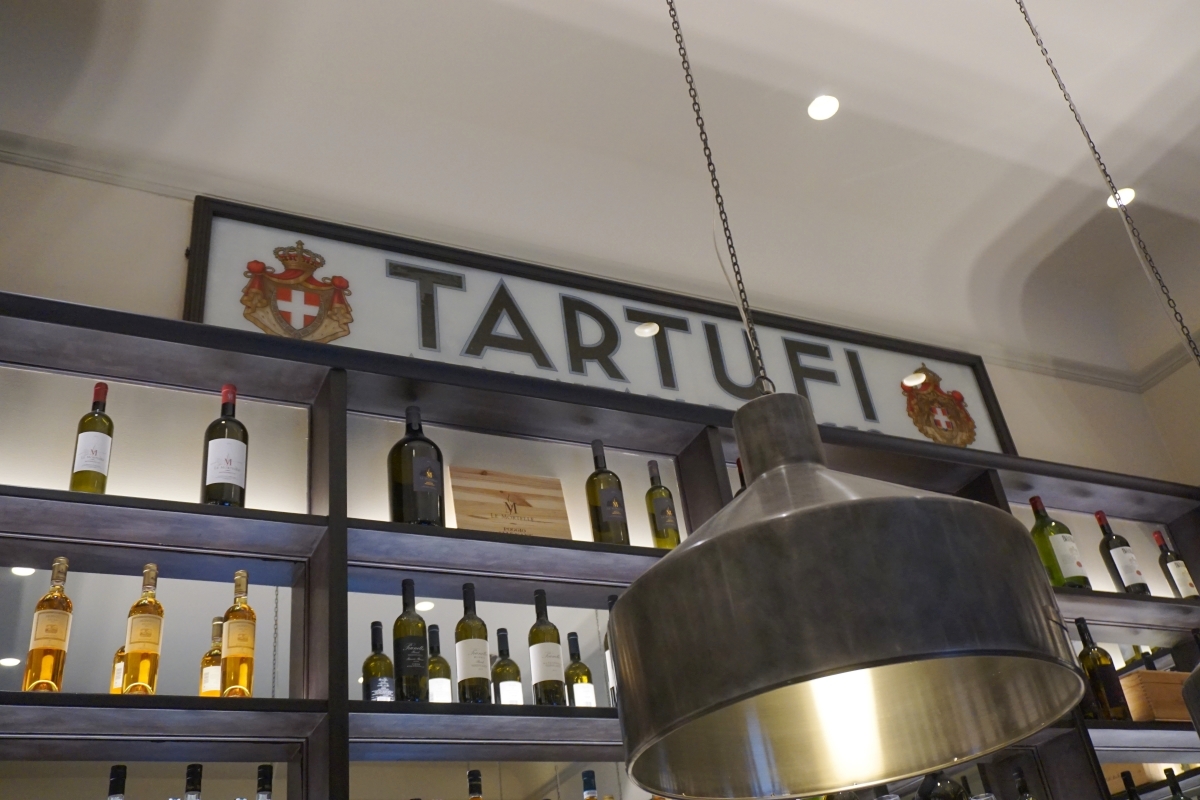 プロカッチは1885年創業ですが、店内は改装されたばかり(2016年取材当時)でモダンな雰囲気。お店のコンセプトは、「トリュフを用いた数々の美食と、ワイン」ということで扉を開けると濃厚なトリュフの香りに包まれ、早くも食欲を刺激されます。