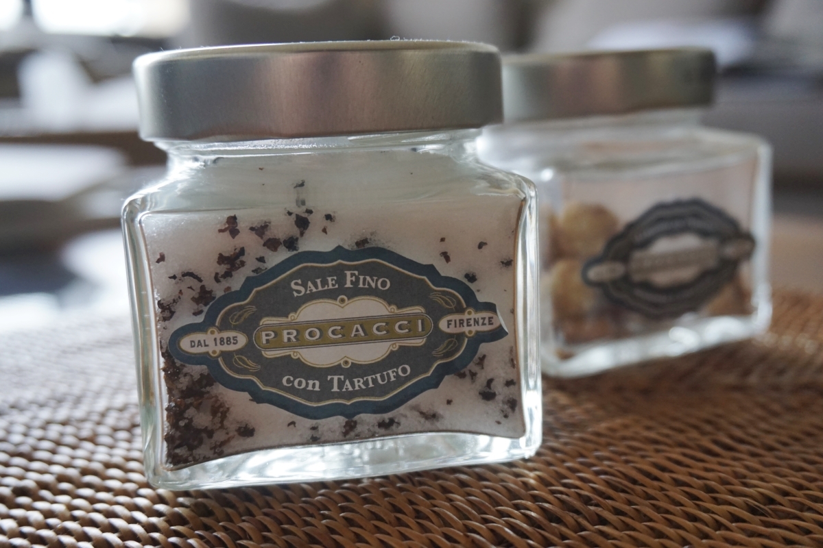 プロカッチへ来たら、販売エリアも見逃せません。レジ横のスペースではお土産にピッタリなトリュフペースト、トリュフ塩、トリュフアーモンド、といったアイテムが並んでいます。お料理好きの友達や食いしん坊な友達には、大層喜ばれること間違いなし。