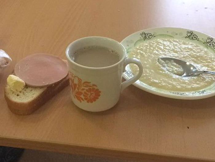 カーシャ(おかゆ)、パン、ハム、ミルクコーヒーなど。若干、ロシアっぽいメニューもありますが、そんなに日本の洋食と大差ありません。味はなかなかおいしいそうですよ。でも、病院やクリニックは(出産の時以外は)できれば行きたくないところですよね。