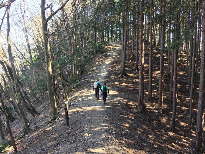 木漏れ陽の中の道も心地よいです。ひんやりとポカポカが同居する、冬の低山ならではの感触です。
