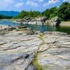 また、少し上流には日本最長の水管橋(1100.95m)の荒川水管橋が架けられています。1984(昭和59)年に完成しました。白くまっすぐに伸びる水管といくつも連なる真っ赤なアーチの配色が実に美しく、土木建築ファンにも興味深いスポットです。
