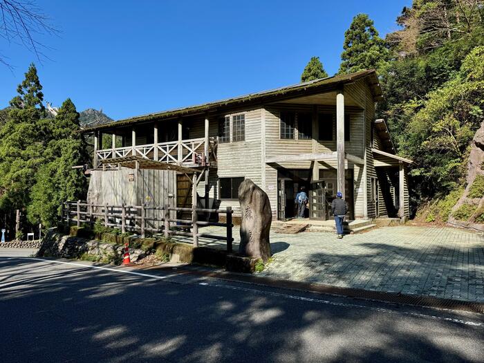 『森泉(しんせん)』は木のぬくもりを大切にした自然にやさしい建物です。1階の売店では、屋久杉工芸品などを販売しています(ただし、食物類は販売していません)。2階はゆっくりくつろげるスペースです。バルコニーからは太忠岳と豊かな森の大パノラマを楽しむことができます。なお、トイレは1階にあります。