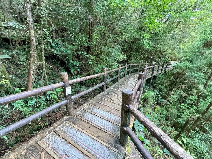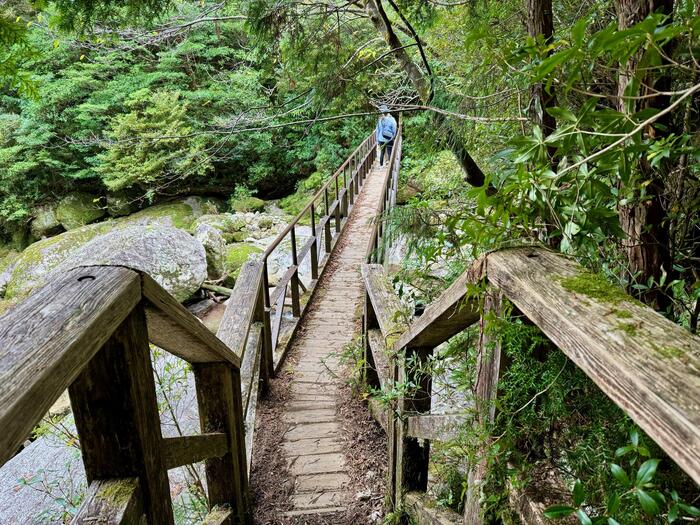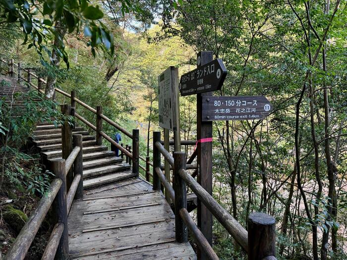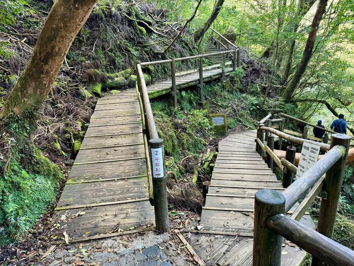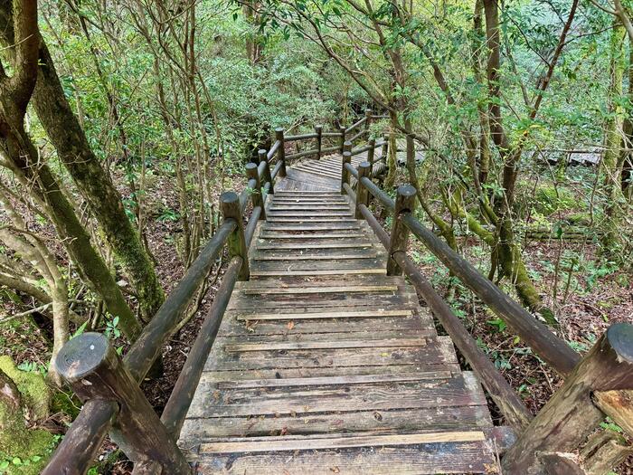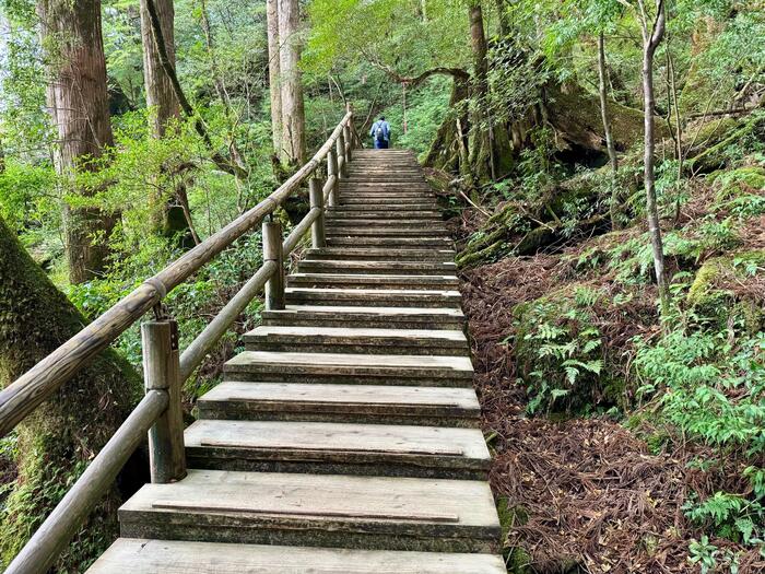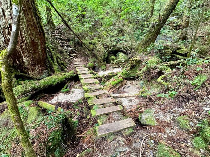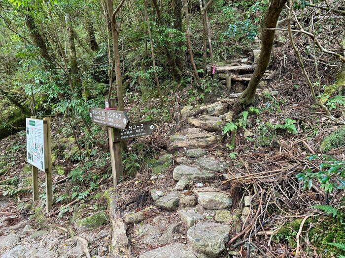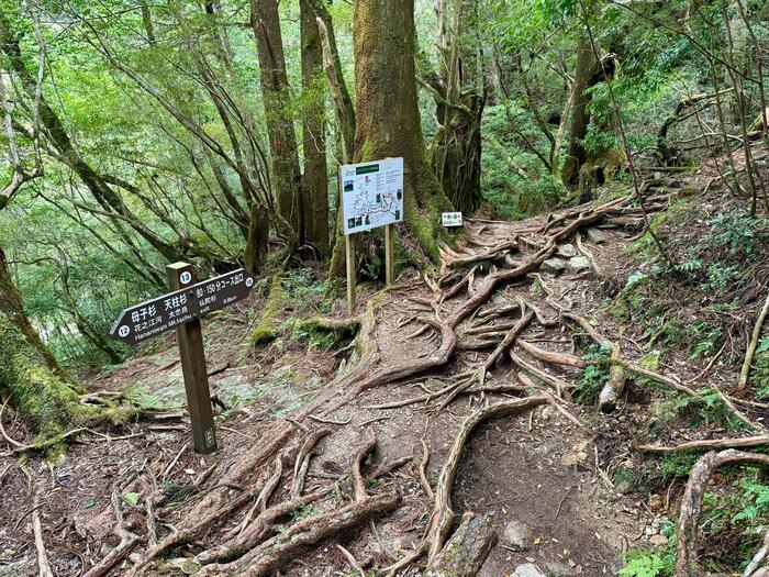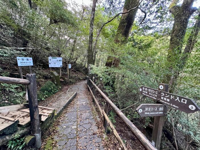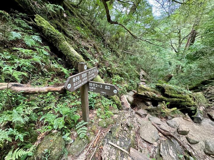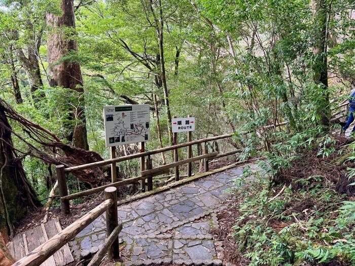 先に感想から申し上げますと、150分の『やくすぎの森コース』を選択しましたが、登山道は整備されていて特に危険な箇所はありませんでした。気をつけないといけないところはしっかりと補修されています。入口でもらえるパンフレットの案内図に記載された地点番号と案内看板を確認すれば道に迷うこともありません。とはいえ、『やくすぎの森コース』を選択している人は少ないので途中あまり人と出会わず寂しいかもしれません。(一方通行なので人とすれ違うこともありませんので余計に寂しい...)ポイントごとに案内板もあり、ヤクスギに関する知識も得ることができます。時間に余裕があれば『天文の森:210分コース』も良いと聞きましたのでぜひ行ってみてはいかがでしょうか。その代わり、登山装備はしっかりと準備しましょう。