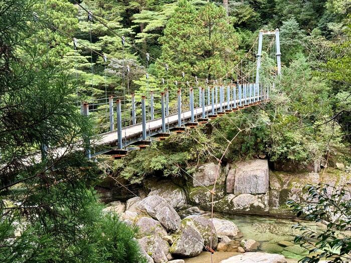 【14:55】『清涼橋(せいりょうばし)』を渡ります。吊り橋になっています。