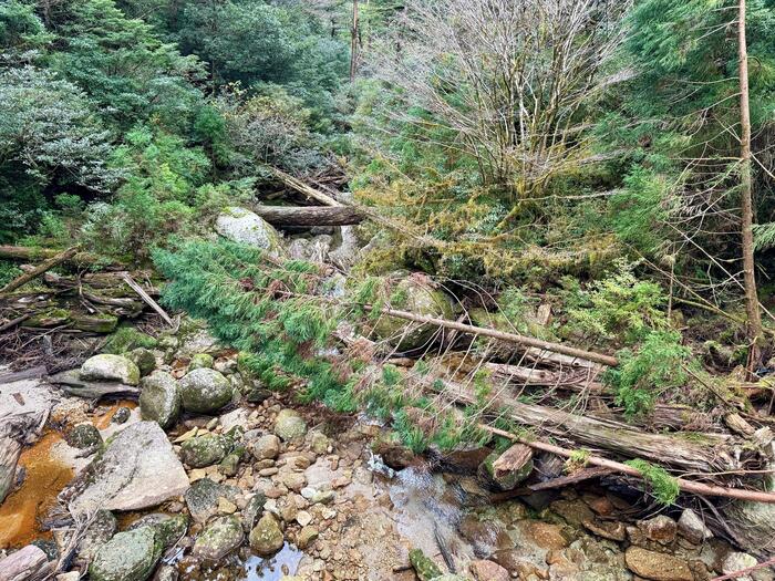 『清涼橋』から上流を見ると土石流が流れた痕跡が残っていました。
