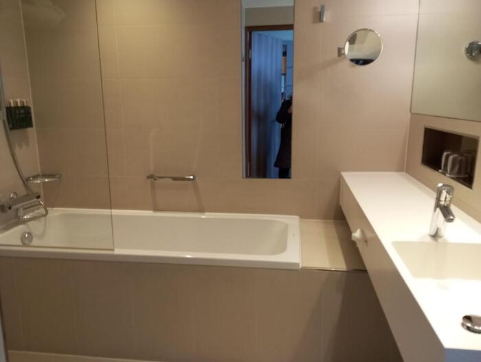 希望してなかったにも関わらず、海外のホテルにしては珍しいバスタブ付きの部屋でラッキー!!子供もバスタブに興味津々。長いフライトに備え心身ともにリフレッシュし、久々の日本帰国への高揚感が高まります。
