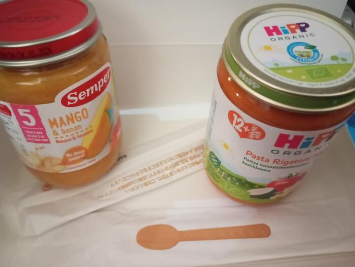 小さい子供がいると、狭い機内で機嫌よく過ごしてもらうために食事がより重要。アーランダ空港は思ったよりベビーフードを売ってる店が少なく心配だったのですが、ANAでは、事前予約で乳幼児向けの機内食も無料で用意。