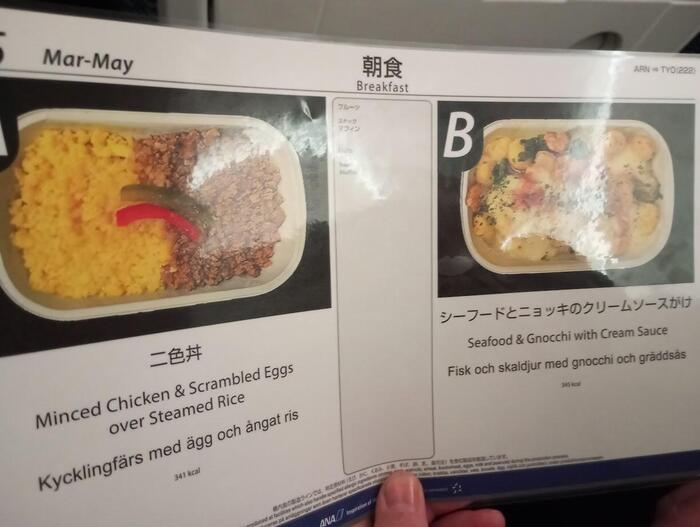 毎回楽しみにしているのが、機内食。特に今回は念願のANAということもあり、機内で和食が食べれる嬉しさ。さらに予め写真付きメニューを渡され、2つのメニューのうちどちらが良いか選べる効率の良さも、さすが日本を代表する航空会社のサービスです!!