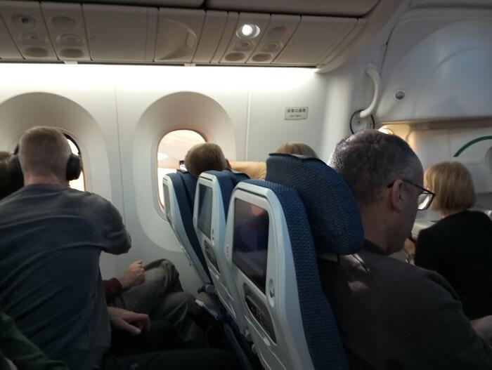 この日の機内は、9割が旅行客と思われるスウェーデン人。体格が大きい人が多かったせいか、通路や座席が狭く感じました。そして小さい子供も少なく、歩き回る幼児は私たちの娘だけで、若干心配になったものの 乗務員さんや周囲の方々が寛容で助かりました。