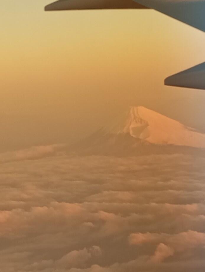 富士山!!飛行機に乗ったのは数えきれないですが、機内からこんなにハッキリ見えたのは人生初めて。まるで「約3年ぶりの日本帰国、お帰りなさい!」と言ってくれているかのよう。神々しい富士山を見て感動するのは外国人だけではなく、日本人の私たちも同じです。