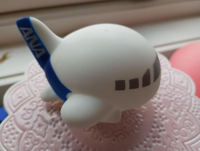 子供が何より喜んだのが、ANAオリジナルのおもちゃ。手触りが心地よいプニョプニョな飛行機で、娘は日本滞在中もずっと握りしめていました。