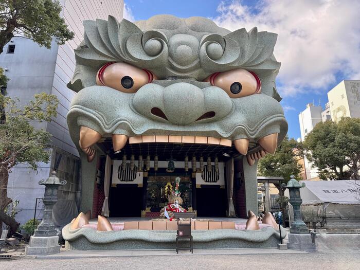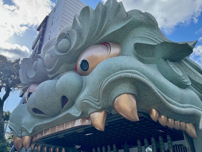僕は難波八坂神社には何度も参拝しているので獅子殿のことは前から知っていました。獅子殿を見に来るのは中国系、台湾系の人が多いのかと思っていましたが、実際に行ってみると欧米系の方々もたくさんいらっしゃいました。ふとグーグルマップのクチコミを見ると約1万ものクチコミが書かれていました。。。恐るべし。。。確かに関西国際空港から南海電車に乗って難波に着くとそのまま歩いてくることができますから。なので、ガラガラと大きなスーツケースを持っている訪日外国人旅行客がたくさんいました。