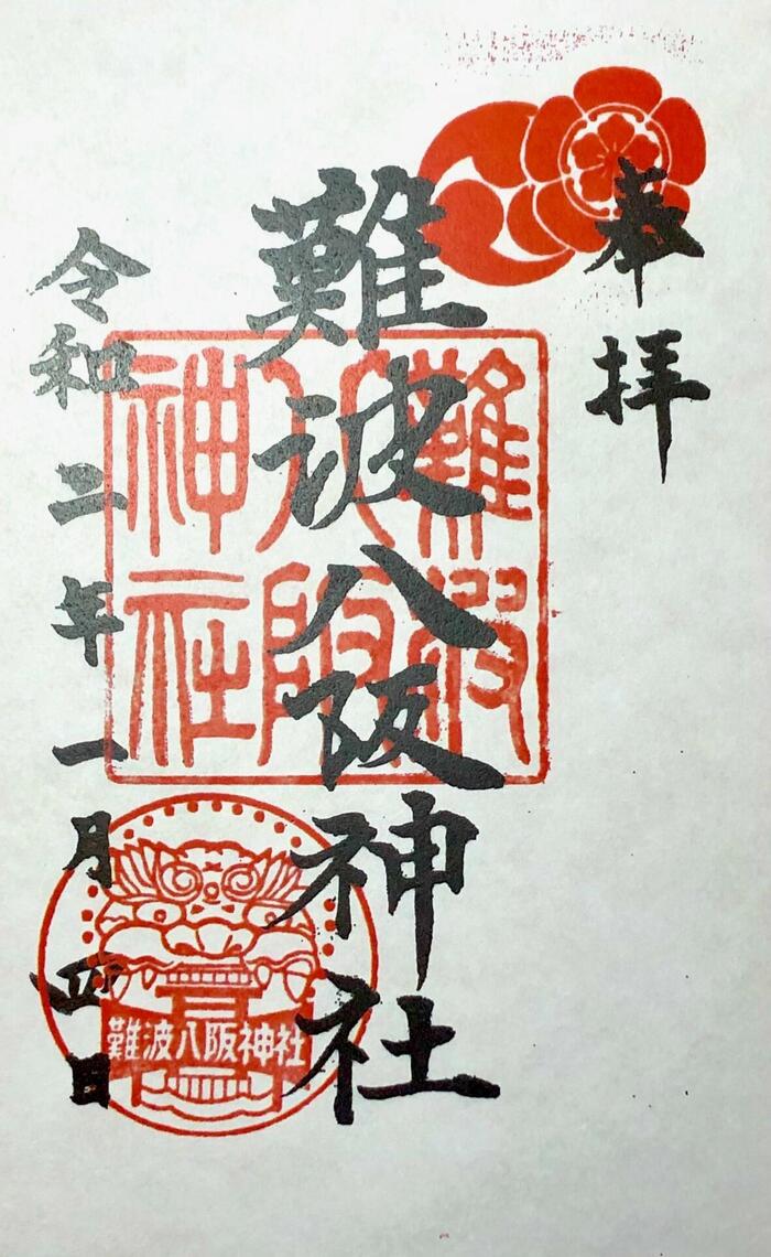 難波八坂神社の通常の御朱印(過去にいただいた御朱印です)です。こちらは直書きです。この頃は訪日外国人旅行客なんて誰もいなかったと思います。