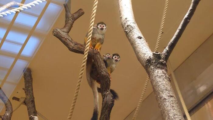 まず一番楽しいのが、サル舎です。中央のパビリオンからほど近く、屋内施設も内装も装飾が凝っていて、こんな素敵な建物で暮らしているサルたちがうらやましくなってしまいますね。