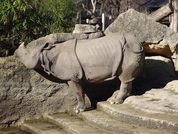 ここから入ると、サイなど草食動物ののどかな平地エリアになります。そのまま「ヒーツィング入り口」方面に向かって歩くと、メインエリアを通って主要な動物たちを一通り見ることができ、帰りの交通機関にも便利です。