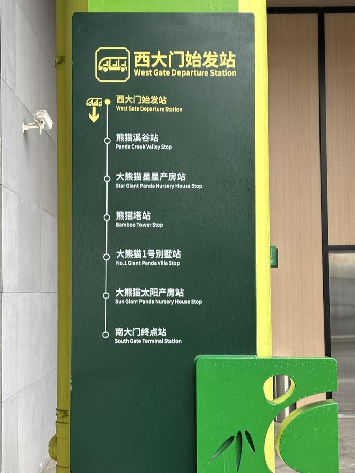 カートは西大門始発駅の場合は、ジャイアントパンダ渓谷、ジャイアントパンダ星産室、パンダタワー、ジャイアントパンダ1号別荘、ジャイアントパンダ太陽産室、南大門終着駅という順番で停車するようになっており、南大門始発駅の場合はその逆ルートを走ります。