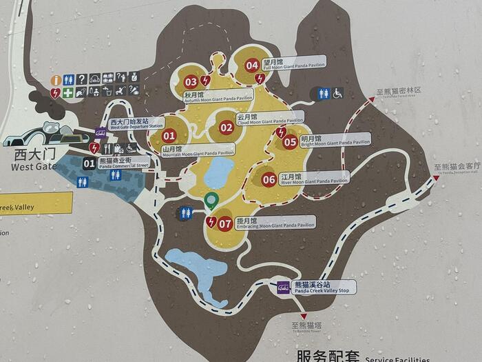 - 成都パンダ基地の魅力3. 真中にレストランとショッピングセンターがある