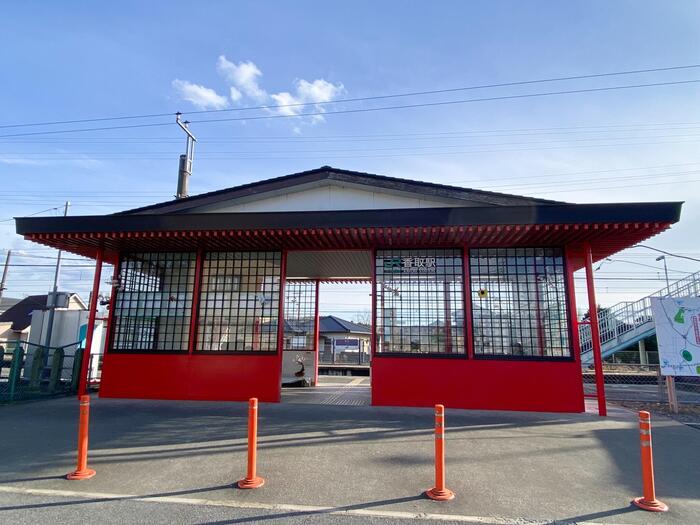 香取神宮の最寄り駅は、無人駅の「JR香取駅」。旅の初めに下車した「JR佐原駅」の一駅隣(下り)にあります。