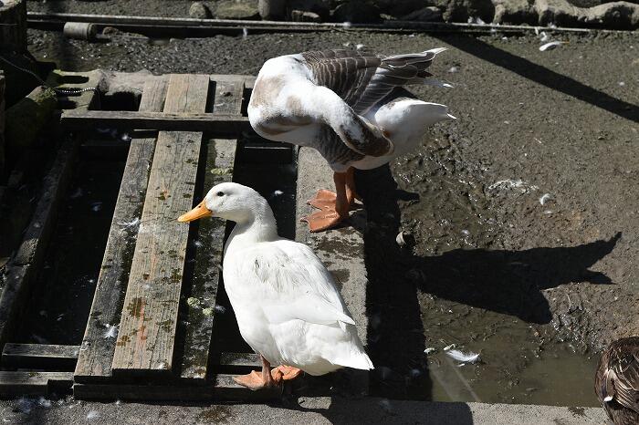 アヒルやカモなど水鳥のエサは、ガチャガチャで販売しています。当たりが出たらワンモアチャンス。鳥たちも大喜びです。エサを追いかけて大勢が走る姿は運動会のよう。食べ損ねたアヒルが「ガーガー(もっとくれよ)」とおねだりしますよ。
