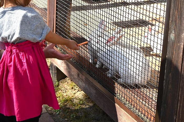エサの販売は終日10:00〜15:00まで。家から持ってきたものや、そのあたりに生えている草を食べるとお腹を壊したり、具合が悪くなることがあるので与えないでくださいね。