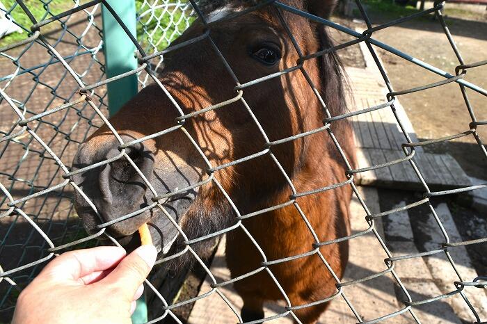 小さな動物たちはスティックにんじんを数本食べればお腹いっぱいなようですが、ポニーなどの大きな動物は、いくら食べても足りなさそう。平日限定で「にんじんスティックビックパック」を販売しているので、お腹いっぱい食べさせてあげてください。