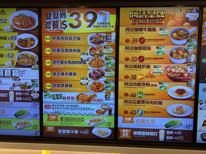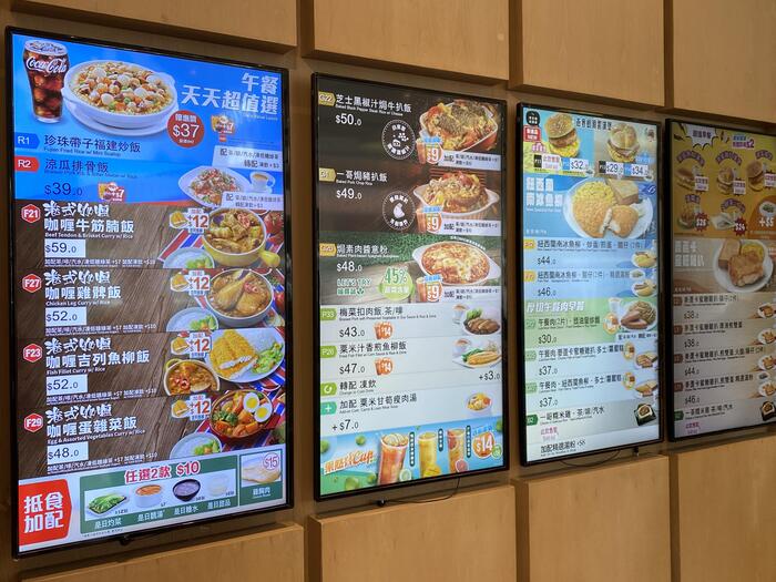 香港のローカルチェーンのファストフードは、そのメニューがモーニング、ランチ、アフタヌーンティー、ディナーと、時間ごとにメニューが異なっていたり、季節やプロモーションでメニューがチェンジするため、いつ行ってもメニューのバリエーションが豊富です。