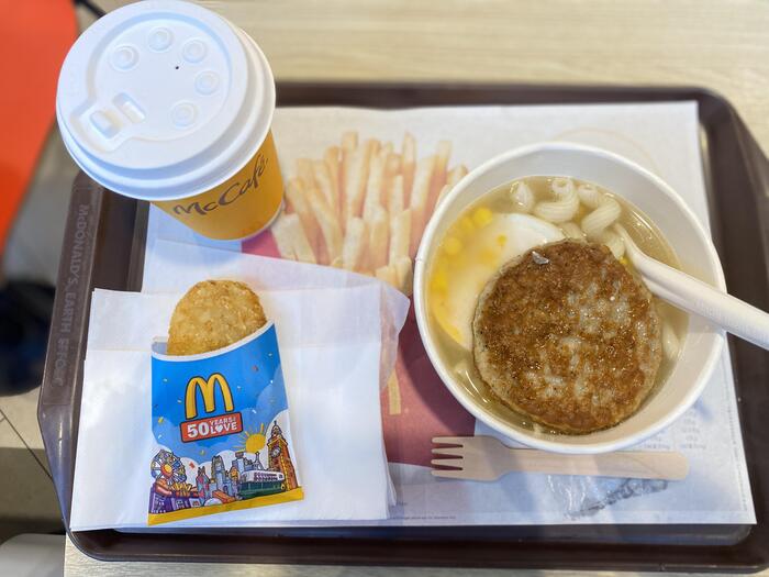 世界のファストフード、マクドナルドですが、香港には香港にしかないメニューがあります。そのひとつが香港の朝食の定番、マカロニスープ。チキンベースのマカロニスープにソーセージのパティと卵がインしており、見た目は斬新ですが、どこかやさしい味です。地元でしか食べられない味を求めて、旅先での朝マックもいいかもしれません。