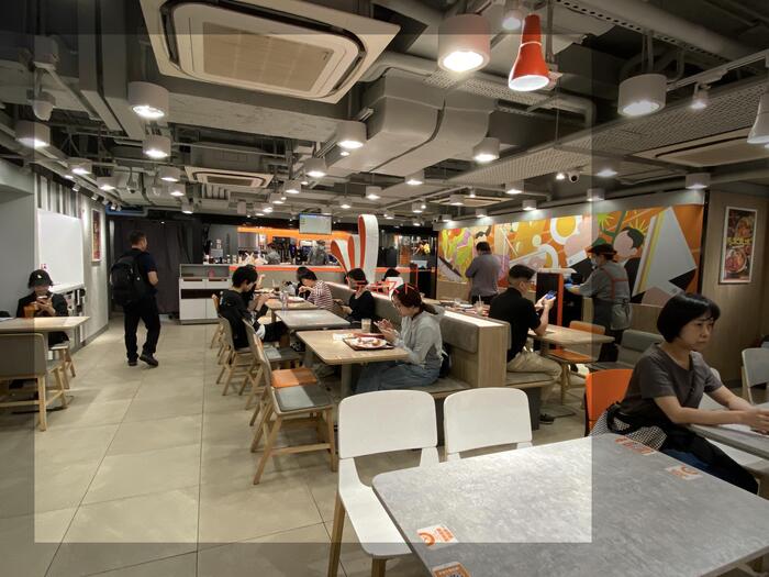 大快活は1972年に荃湾(Tsuen Wan)に第1号店をオープンして以来、現在香港内に約100店舗を展開するファストフードチェーン店。ロゴマークのオレンジ色を基調とした店内は明るく清潔感があります。