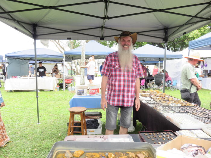 各ブースでは地元のfossickerたちが自慢の石を展示販売していて、「この石は〇〇山で見つけたんだよ」といったエピソードを聞くこともでき楽しかったです。