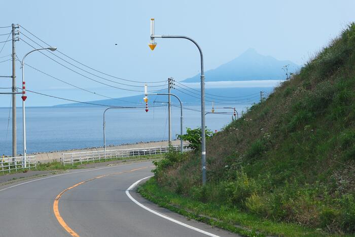 また、ホテル礼文荘では自転車の貸し出しもあり、湖畔を爽快に駆け抜けることも可能。さらに、道道40号線(れぶんアツモリロード)の峠を越えると、雄大な利尻山を望む絶景が広がります。