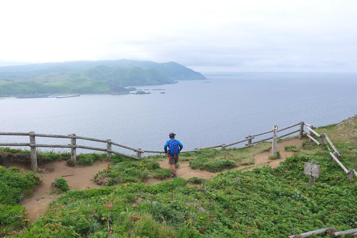 礼文島を代表するトレッキングルート「岬めぐりコース」は、島の最北端・スコトン岬からゴロタ岬、澄海岬を経て、レブンアツモリソウ群生地を巡りながら浜中へと続く全長約12.4kmのロングトレイル。