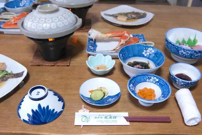 驚いたのは、1泊2食付き1万円台前半という手頃な宿泊料金にもかかわらず、ウニの王様と称されるエゾバフンウニやカニまで振る舞われること。ウニは濃厚な甘みが口いっぱいに広がり、舌の上でとろける極上の味わいです。