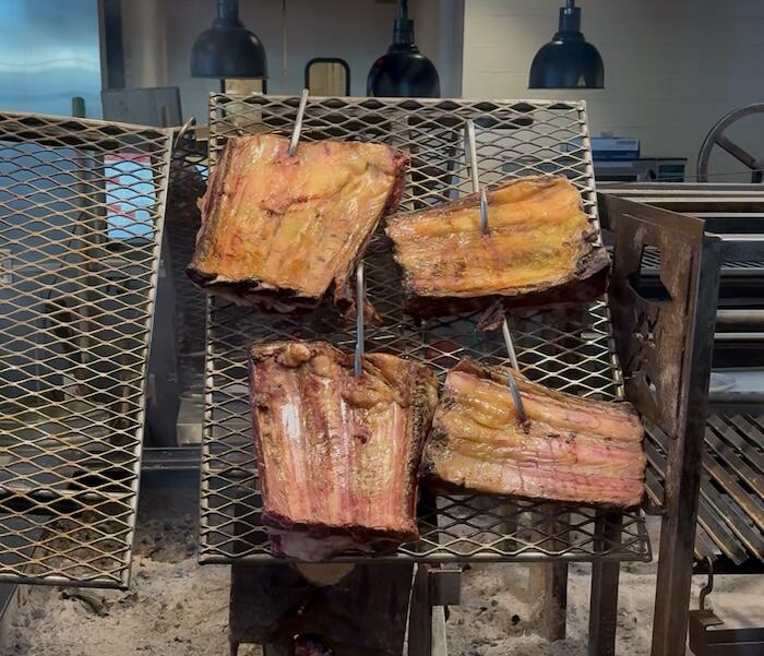 アルゼンチン料理といえば、アサード(Asado)が代表的です。アサードというのは、特大のグリルでじっくり焼き上げた肉料理で、香ばしい炭火の香りとジューシーな肉質が特徴です。
