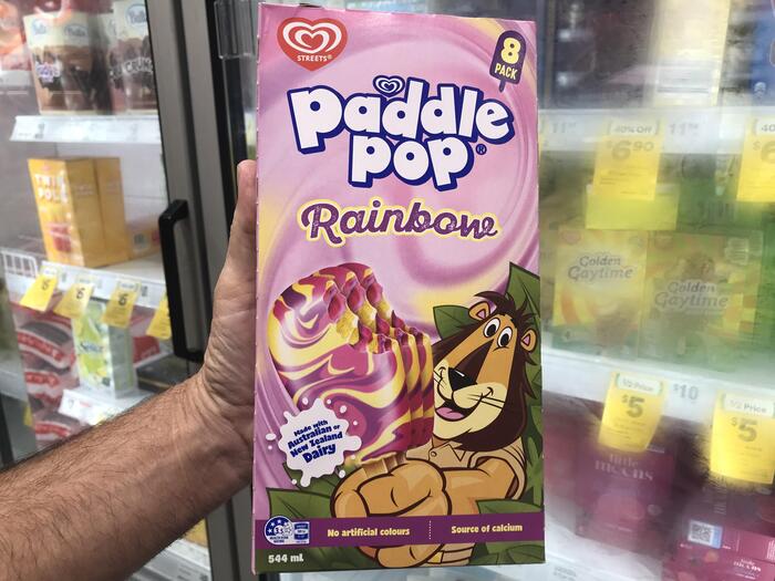 なにより、このアイスクリームが、オーストラリアの人にとって、1番「懐かしい」アイスクリームなんじゃないかな~と思います。1953年にStreets社から発売されたパドルポップは、木製のスティックにクリーミーなアイスをのせたシンプルな形状で、子どもたちに大人気となりました。