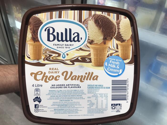 番外編として、大きなタブ入りのアイスクリームも紹介させてください。オーストラリアのスーパーマーケットでは、家庭用として大容量のアイスクリームタブも人気です。