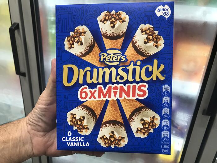 こちらは、オーストラリア生まれではないんですが、オーストラリアではPeters社によって1963年から販売され、それ以来だいぶ親しまれているアイスクリームなので、ご紹介! ワッフルコーンにバニラアイスクリームを詰め、チョコレートとナッツでトッピングしたこのアイスは、子供たちにも人気です。