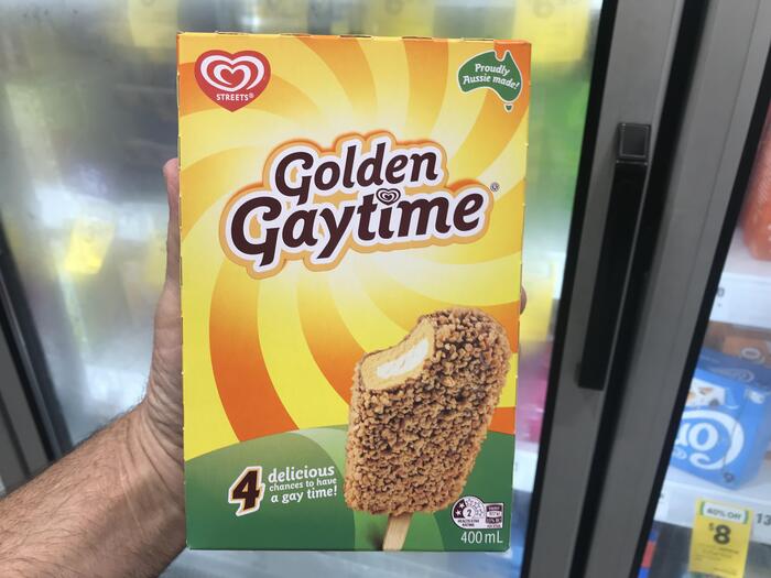 ちなみに、「Gaytime」という名前は、もともと「楽しい時間」という意味の英語表現から来ており、発売当時はごく自然なネーミングでした。しかし時代とともに「gay」という言葉の意味が変化したことで、今では「えっ?」と思う方もいるかもしれません。それでもこの名前は、多様性やユーモアを大切にするオーストラリアらしさを象徴しており、今なお多くの人に愛され続けています。