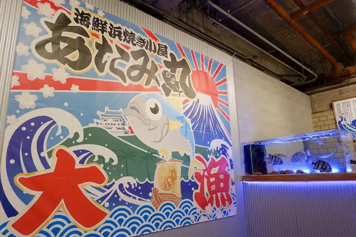 店舗デザインは「漁港の浜焼き小屋」をテーマにしており、活気ある港町の雰囲気を再現しています。