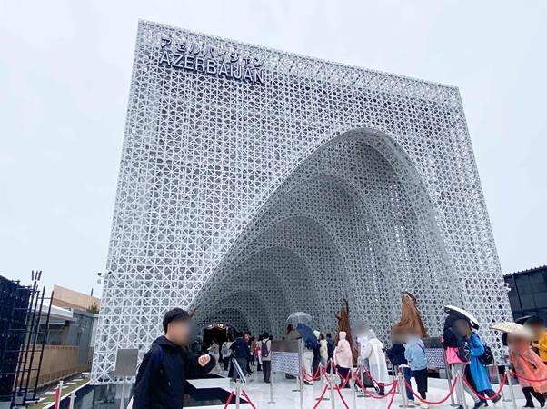 まずはパビリオンの建築美がひときわ目を引く「アゼルバイジャンパビリオン」を訪れました。予約なしでも10分程度並べば入場できました。