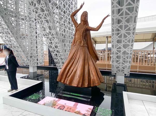 「サステナビリティへの7つの懸け橋」をテーマにしたパビリオンでは、アーチをひとつずつくぐるたびに、「七つの美(女性像)」の横を通り、それぞれが象徴する文化的な側面に触れることができます。女性像は国の豊かな文化を代表し、アゼルバイジャンの詩人であるニザーミー・ギャンジャヴィーに書かれた「7人の美人」の中で指導を求めるバフラム・グル王子のストーリーにインスパイアされ、彫刻されたものです。
