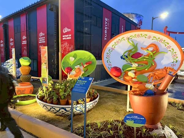 パビリオンを出ると、帰りの通路には大きなタイグルメのオブジェが。おすすめのフォトスポットです。