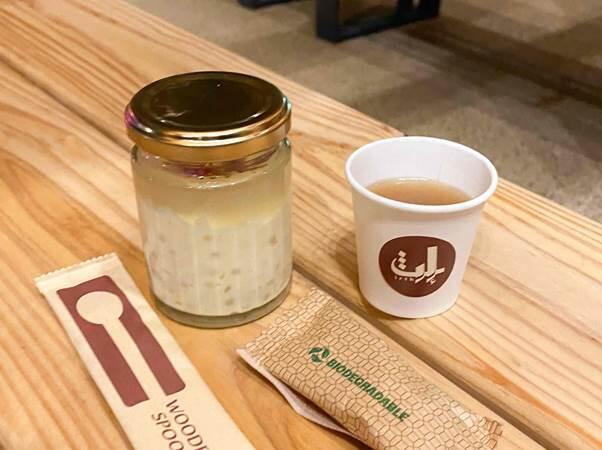 この日はカフェに立ち寄って、気になっていた「サウジコーヒー」を試してみました。数組の列ができていましたが、10分程度並んで注文できました。