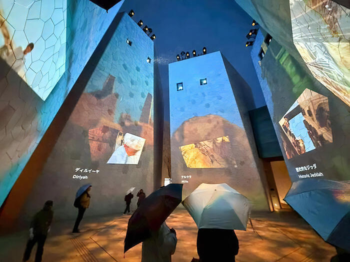 まずは外壁に映し出された映像が現れ、サウジアラビアのイメージをざっくりと掴むことができます。