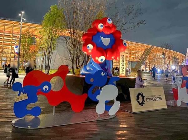 会場内をよく見てみると、公式キャラクター・ミャクミャクから分裂・増殖した小さなキャラクター「こみゃく」があちこちに隠れています。
